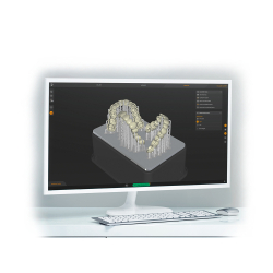 Vysokorýchlostná 3D tlačiareň určená špeciálne na zubné materiály. Umožňuje expresnú výrobu kvalitných, precíznych a mechanicky odolných diel.