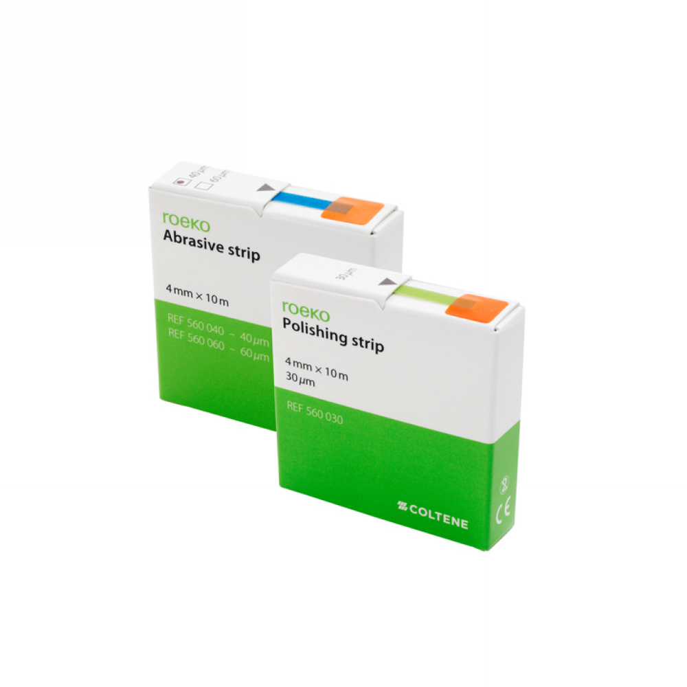 Brúsne pásky na 10 m cievke v praktickom dávkovači – na vyhladzovanie interproximálnych priestorov nedostupných alebo ťažko dostupných inými nástrojmi. Vyrobené z polyesteru odolného voči oderu na konečnú úpravu výplní.