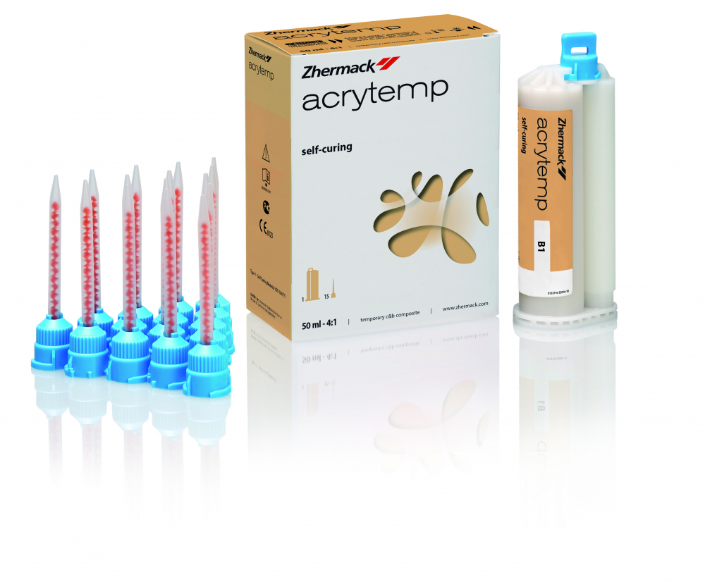Ide o výrobok, ktorého použitie je praktické vďaka samomiešaciemu systému, ľahko sa orezáva a leští, má vysokú odolnosťou proti fraktúram. Neobsahuje metylmetakrylátové monoméry a umožňuje udržiavať nízke teploty počas reakcie tuhnutia bez podráždenia drene. Acrytemp je k dispozícii v 5 odtieňoch a ponúka prírodný estetický efekt, ktorý reprodukuje farbu zubov tak, aby vyhovoval potrebám pacientov aj zubára.
