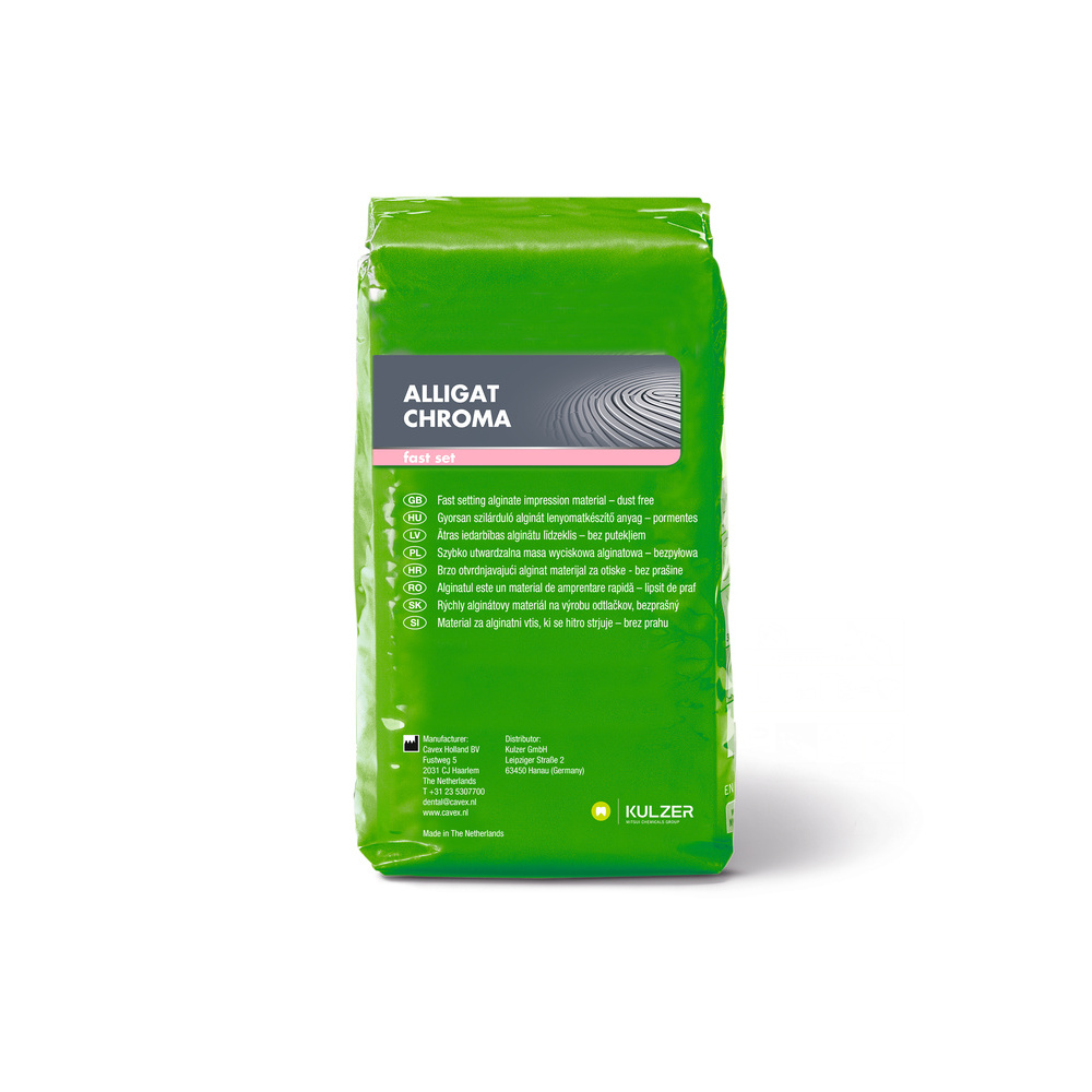 Rýchlo tuhnúca, bezprašná alginátová odtlačková hmota s farebnou indikáciou priebehu tuhnutia. Pri vhodnom ošetrení odtlačku je možné odliať do 24 hodín.