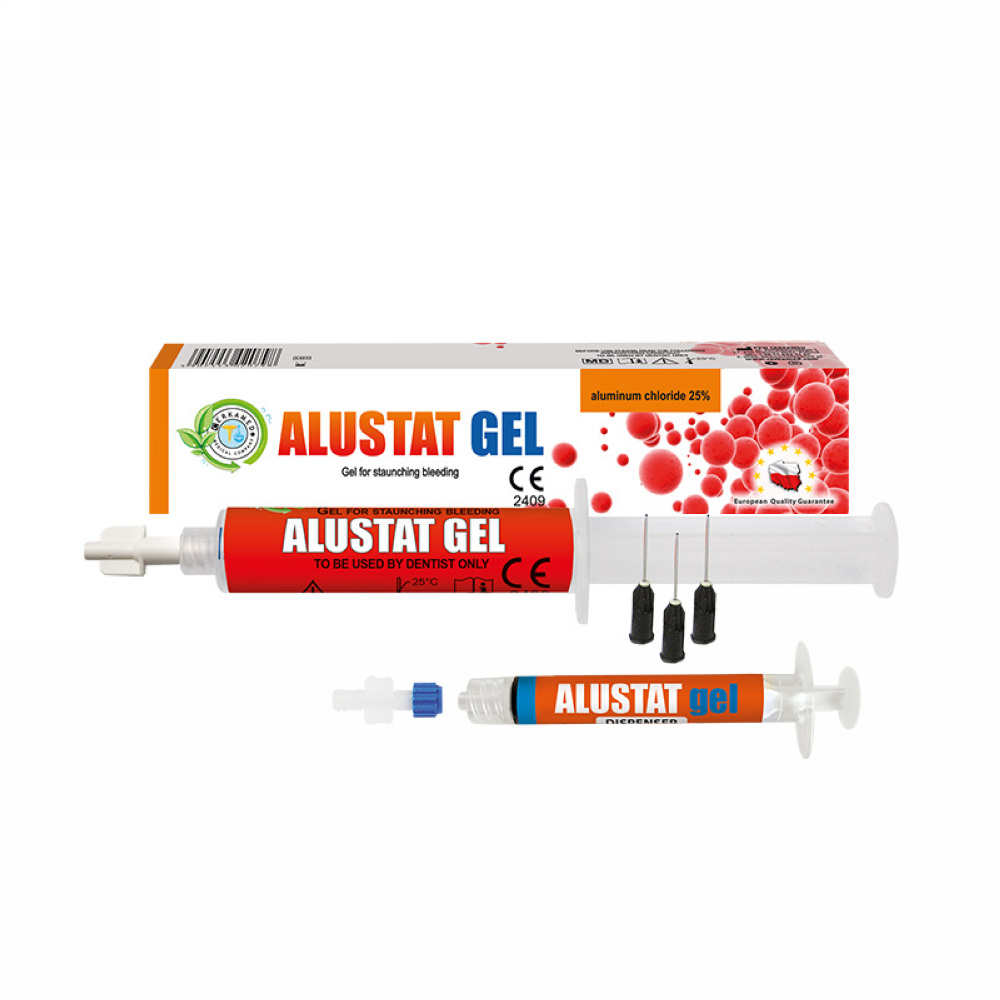 Gél na zastavenie krvácania ALUSTAT GEL je určený na použitie počas zubného ošetrenia na zastavenie mierneho krvácania z ďasien. Chlorid hlinitý v prípravku má vazokonstrikčný účinok na drobné cievky, v dôsledku čoho sa znižuje opuch ďasien a mierne krvácanie.