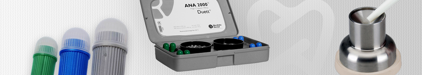 Vysokomeďnatý non-gamma2 amalgám od švédskej firmy Nordiska. V hotových kapsliach.
