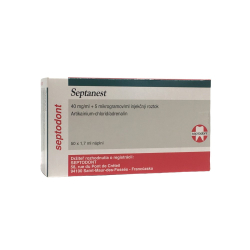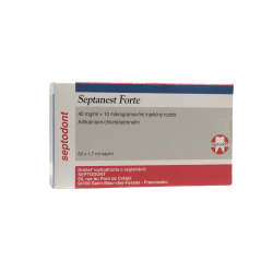 Injekčný roztok na znecitlivenie (anestézu) ústnej dutiny počas zubných zákrokov, obsahuje artikaín a epinefrín (adrenalín), balenie 50 x 1,7 ml karpule.
