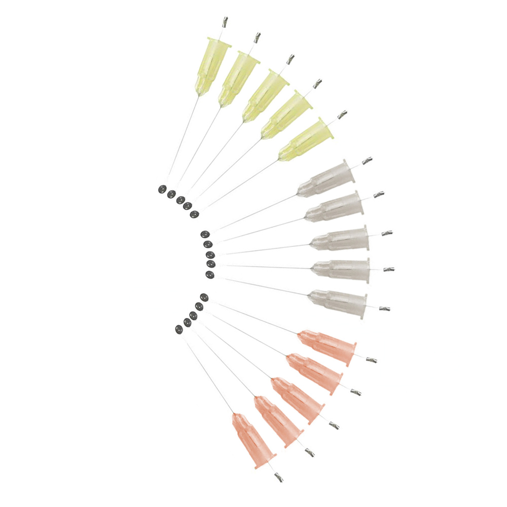 Koncovky vo forme kanyly s nitinolovou slučkou pre endodontický mikronástroj – pero BTR Pen na vyberanie zalomených nástrojov. Tri rozmerové varianty – 0,3 mm (žltá), 0,4 mm (sivá) a 0,5 mm (oranžová). Balenie po 5 kusov.