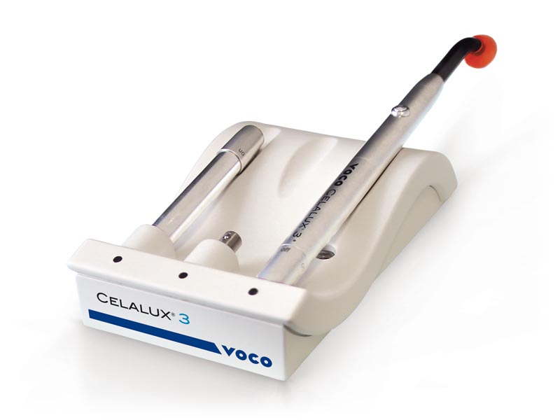 • Celalux 3 (násadec, nabíjačka batérii, napájací kábel s vymeniteľnými koncovkami, 2 batérie, 8 mm svetlovod, gumený štít, návod na používanie)