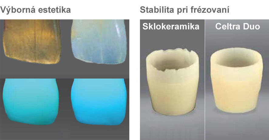 CELTRA™ Duo sa dá veľmi dobre frézovať vďaka ľahkej opracovateľnosti v kryštalizovanom stave. Po vyfrézovaní je možné náhradu len vylešiť a okamžite cementovať adhezívnym cementom. Tento spôsob je určený hlavne na výrobu inlejí a onlejí. Pevnosť materiálu je v takom prípade cca 210 MPa, čo je viac ako pri štandardných sklokeramikách. Alternatívne je možné prácu individualizovať pomocou glazúry a farbičiek. Po napálení glazúry dochádza k ďalšiemu spevneniu bloku a výsledná pevnosť je 370 MPa. Túto vyššiu pevnosť je možné dosiahnuť aj pálením bez glazúry.