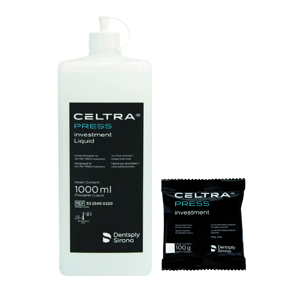 Zatmeľovacia hmota Celtra Press Investment DENTSPLY SIRONA (prášok 6 kg (60 x 100 g), kvapalina 1000 ml) je špeciálne navrhnutá pre Celtra Press pre kvalitné výsledky presovania. Tento nereaktívny povlak a inovatívna mikroštruktúra Celtra Press zaručujú dobrú tekutosť počas presovania. Dosiahnutá presnosť umožňuje vysokokvalitnú výplň, pričom nie sú nutné niektoré časovo náročné kroky, čo uľahčuje konečnú úpravu.