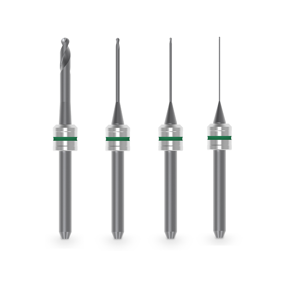 Frézka s technológiou RFID pre Ceramill Mikro 4X/5X, Motion 2 a Matik na materiály Ceramill PMMA, PEEK, Splintec, M-Plast. Farba krúžku zelená. Veľkosti 2,5, 1,2, 1,0, 0,6 a 0,3