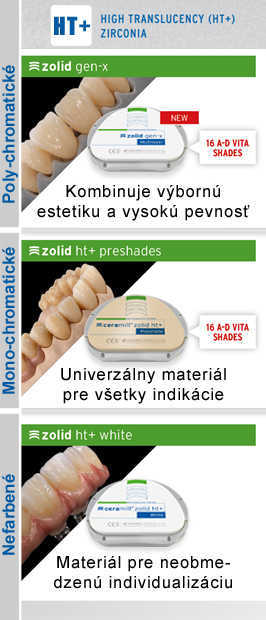 Sintrovacie programy je možné použiť pre všetky materiály ZI white, Zolid HT+ white, Zolid HT+ preshades, Zolid gen-x, Zolid FX white, Zolid FX preshades, Zolid FX multilayer