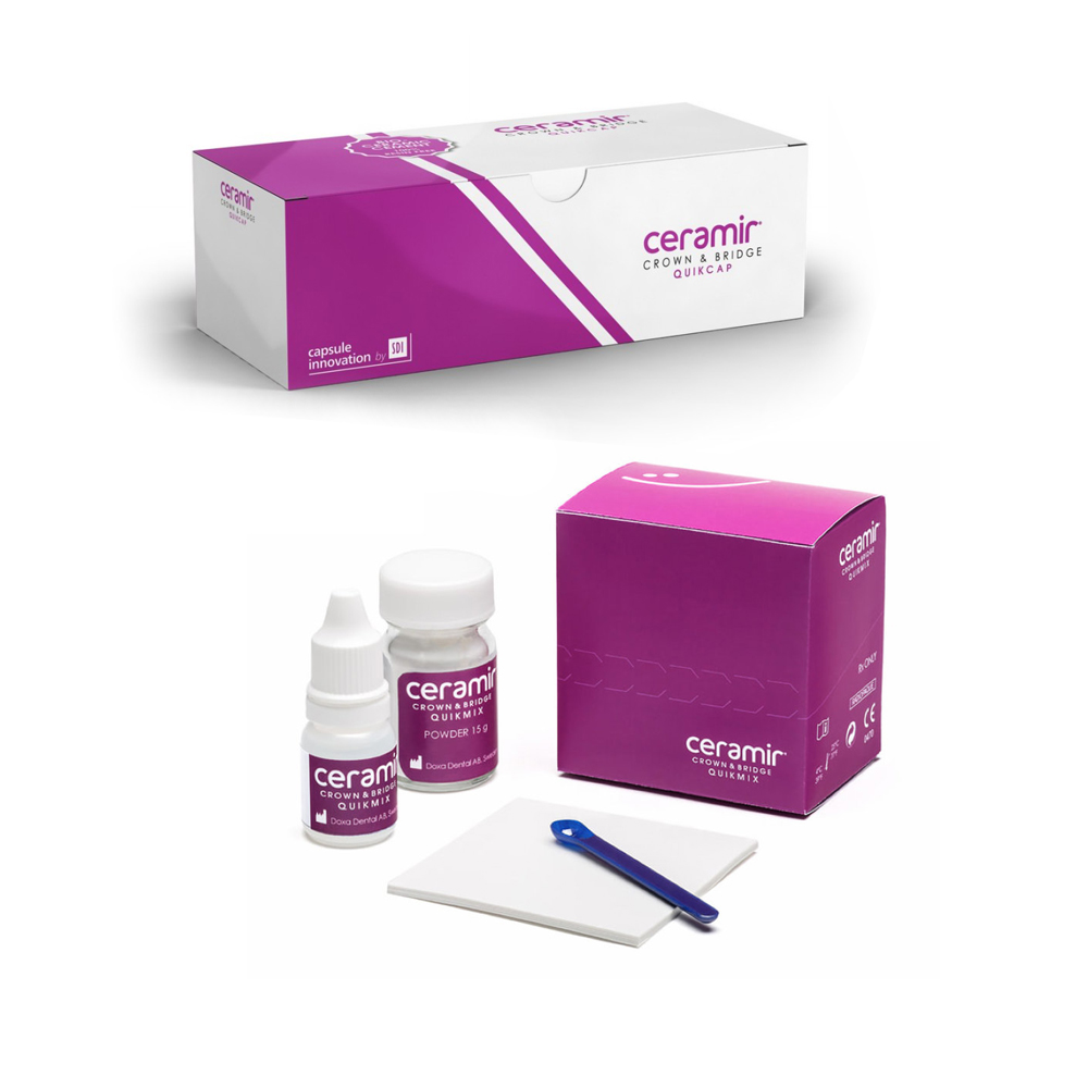 Cementačné materiály na fixáciu zubných náhrad, koruniek a mostíkov od firiem Solventum, Kuraray Noritake, VOCO, GC, Coltene, Pentron, Kerr a i.