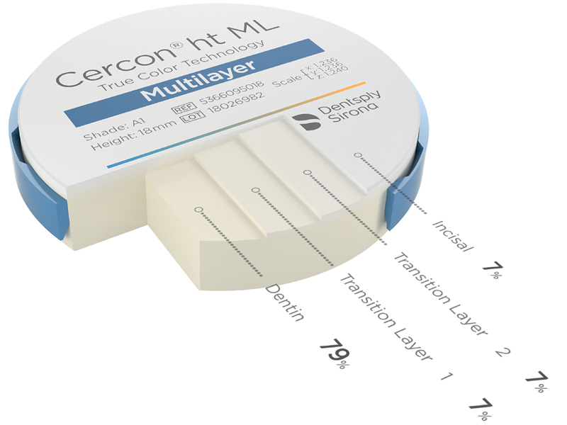 - Cercon ht ML (vysokopevnostný translucentný polychromatický zirkón) disk Ø 98 mm