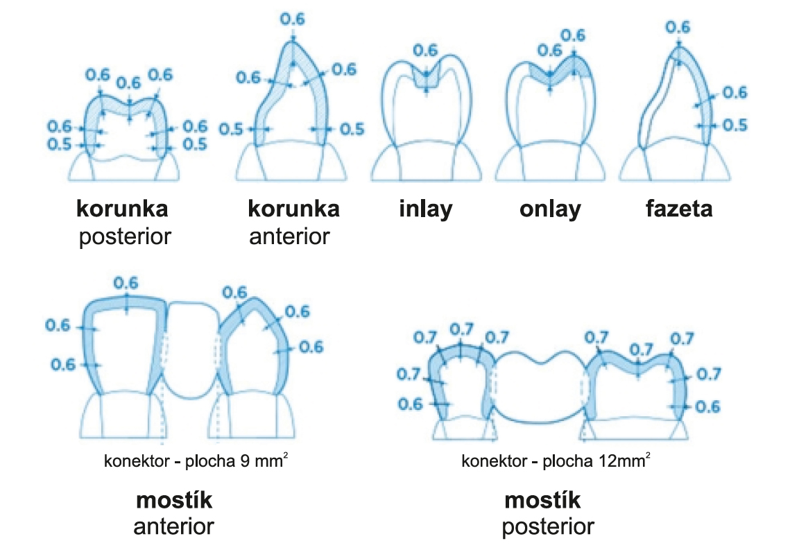 (2) incizálna časť - málo farbiva, najviac translucencie (vrchná časť bloku)