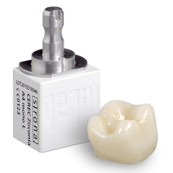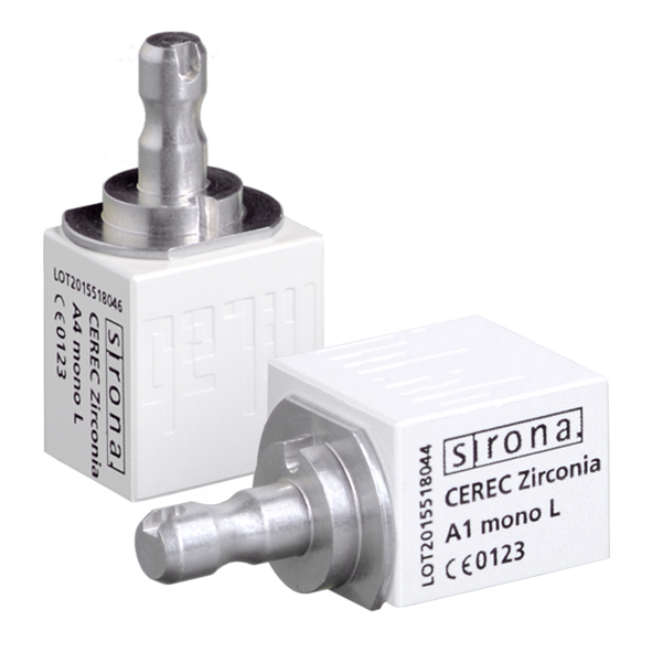 - CEREC Zirconia mono L, blok veľkosť 20/19 (20 x 19 x 15,5 mm)