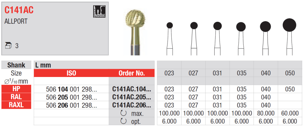 | 066700141 | Kostné frézy RAL C141AC.205.023