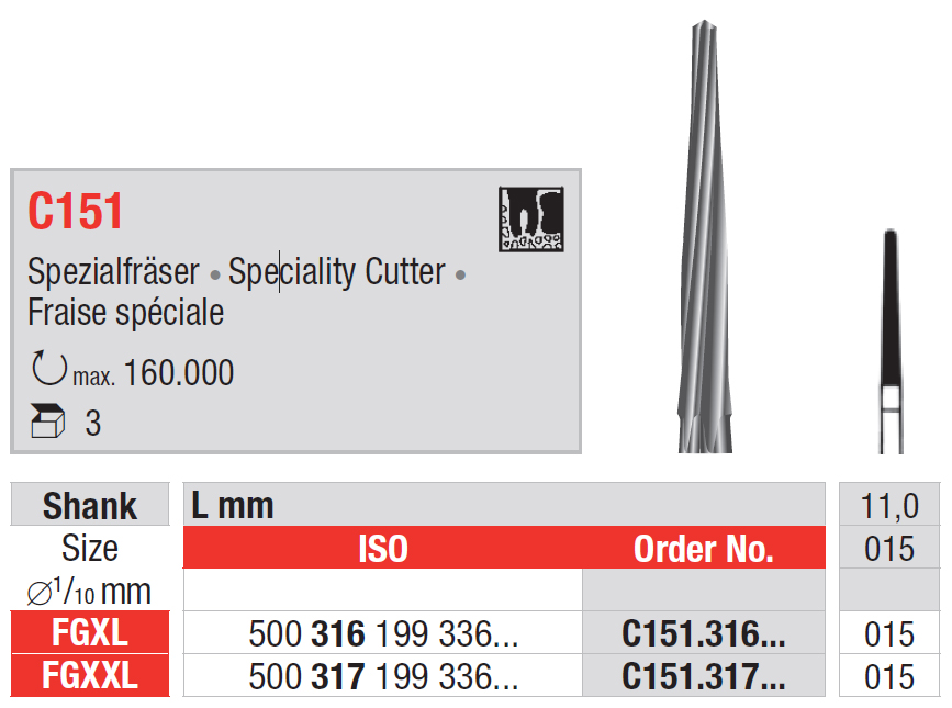 066700060 Chirurgické frézy FGXXL C151.317.015