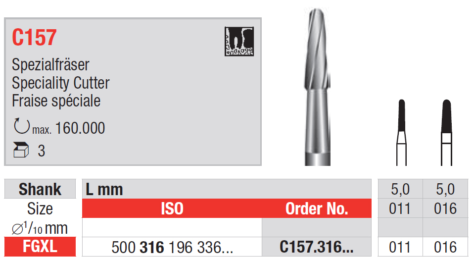 Špeciálna chirurgická kostná fréza kónického tvaru, veľkosť 011 a 016, mandrel FGXL.