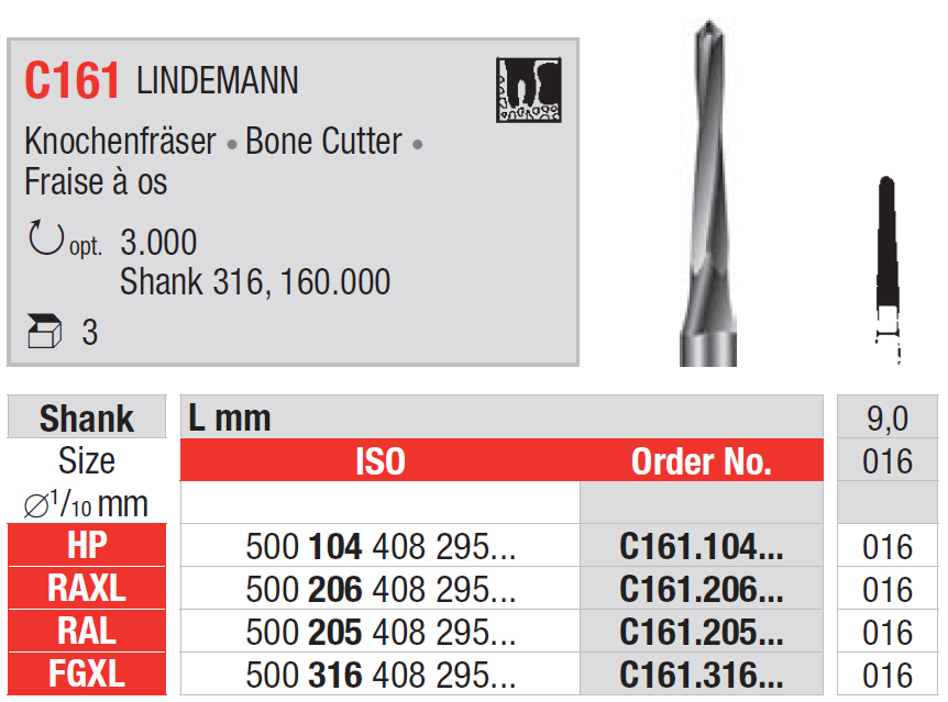 Chirurgická kostná fréza v tvare kónusu, veľkosť 016, mandrel HP/RAXL/RAL/FGXL. viac o produkte