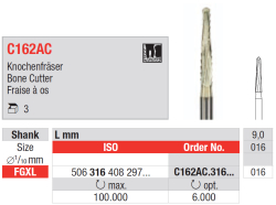 Tvrdý povlak ZrN (nitrid zirkónu). Indikácie: Na preparáciu štruktúry kostí a zubov. Oddeľovanie zubov a zubných koreňov, odhaľovanie a odstraňovanie impaktovaných zubov múdrosti, odstraňovanie zvyškov koreňov, preparácia kostí.