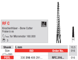 Chirurgická kostná fréza RF C, mandrel FGXL, driek 10,5 mm, veľkosť 016.