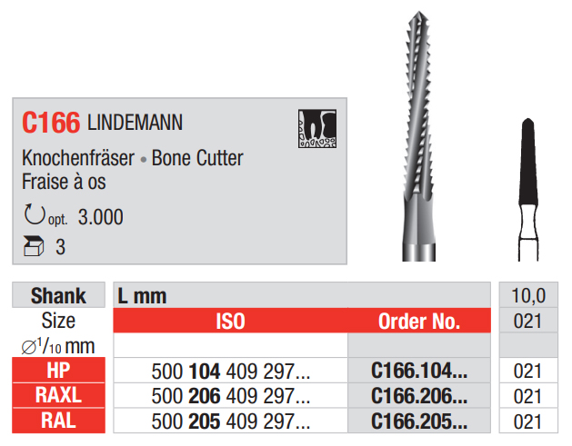 | 066700076 | Chirurgické frézy RA C166.205.021 - Lindemann
