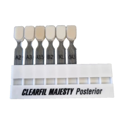 CLEARFIL MAJESTY™ Posterior je svetlom tuhnúci, röntgenkontrastný hybridný kompozit.