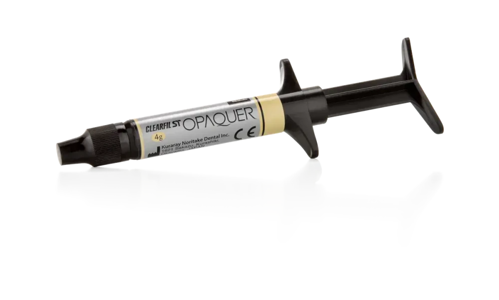 CLEARFIL ST OPAQUER je svetlom tuhnúca kompozitná živica používaná pre maskovanie kovovej temnoty podkladu a zmeneného sfarbenia zuba.