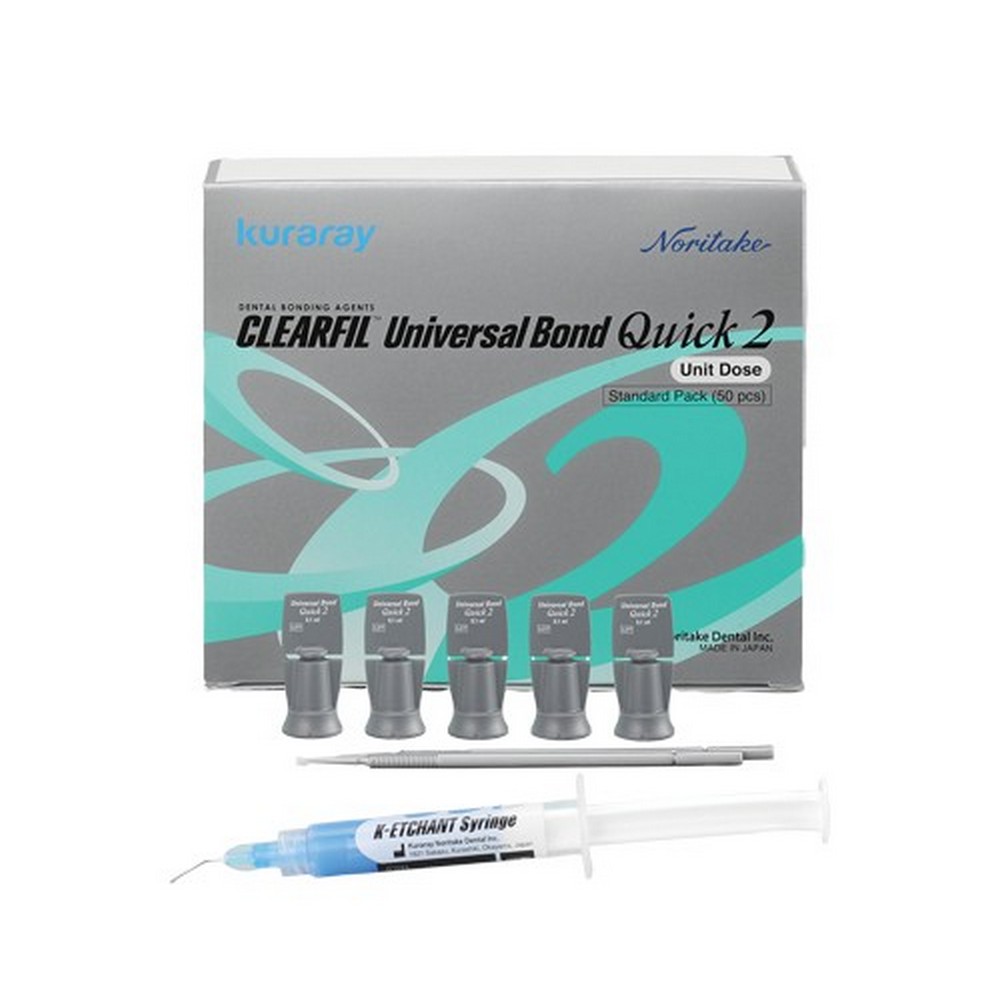 CLEARFIL™ Universal Bond Quick 2 obsahuje originálny materiál MDP kombinovaný s jedinečným materiálom AMIDE a novými monomérmi UTM, ktoré tvoria tenkú, silnú adhezívnu vrstvu bez čakania, výsledkom čoho je Advanced Rapid Bond Technology. Táto kombinácia zlepšuje pevnosť spojovacej vrstvy s cieľom získať spoľahlivosť pri jednokrokovom lepení a pri skladovaní nie je potrebné žiadne chladenie.