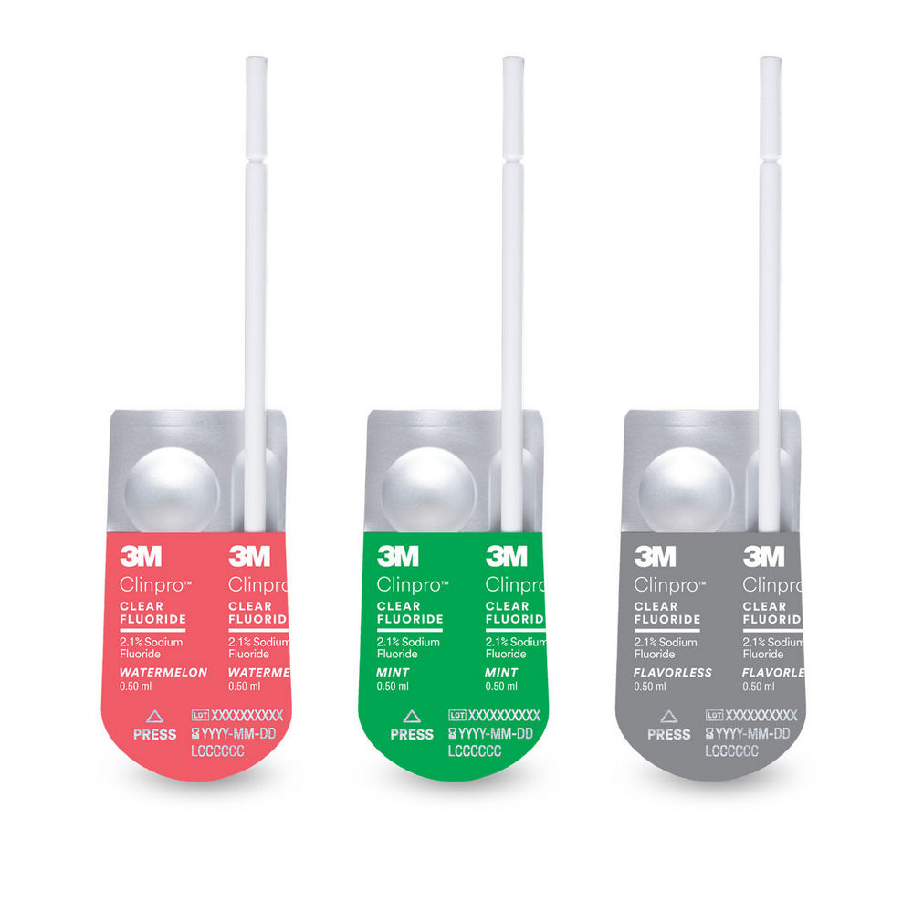 Clinpro™ Clear Fluoride Treatment je dostupný v troch príjemných príchutiach a hladko sa nanáša na povrch zubov. Navyše s minimálnym časom pôsobenia len 15 minút je jednoduchšie, aby pacienti povedali „áno“.