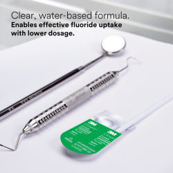 3M™ Clinpro™ Clear Fluoride Treatment je číry fluoridový ošetrujúci prípravok na báze vody bez obsahu kolofónie, ktorý je pripravený na aplikáciu a poskytuje ochranu skloviny a dentínu. Fuoridová hmota na ošetrenie sa vyznačuje receptúrou s hotovým uvoľňovaním, ktorá umožňuje efektívne vstrebávanie fluoridu s minimálnym časom kontaktu iba 15 minút.