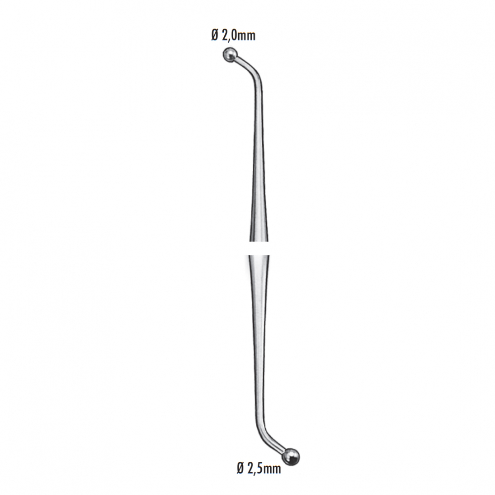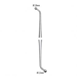 Obojstranný nerezový nástroj na výplne (cpátko), guľôčky 2,0 a 2,5 mm, dĺžka 17 cm.