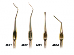 MX1 – hrot na manipuláciu s MTA+ z bločku Matrix do pripraveného koreňového kanálika, pri pečatení perforácie (perforácií) a retrográdnej výplni zadných zubov.