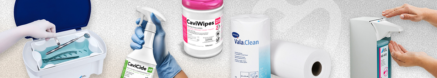 Nielen pandémia COVID 19 zvýšila význam dezinfekcie v stomatologických ambulanciách. Vysoký štandard hygieny je čoraz dôležitejší a čoraz viac vyžadovaný samotnými pacientmi. V ponuke sa nachádza ucelený dezinfekčný program od nemeckých firiem Durr Dental a Ecolab. Ucelený dezinfekčný program vytvára kompletnú ponuku dezinfekčných prípravkov na dezinfekciu malých a veľkých nástrojov, dezinfekciu plôch, dezinfekciu pokožky ale aj dezinfekciu odsávani a dezinfekciu odtlačkov. Taktiež tu nájdete špecializované prípravky na šetrnú dezinfekciu čalúnenia stomatologického kresla. Okrem týchto výrobcov tu nájdete aj produkty firiem Kerr, Coltene a Zhermack.