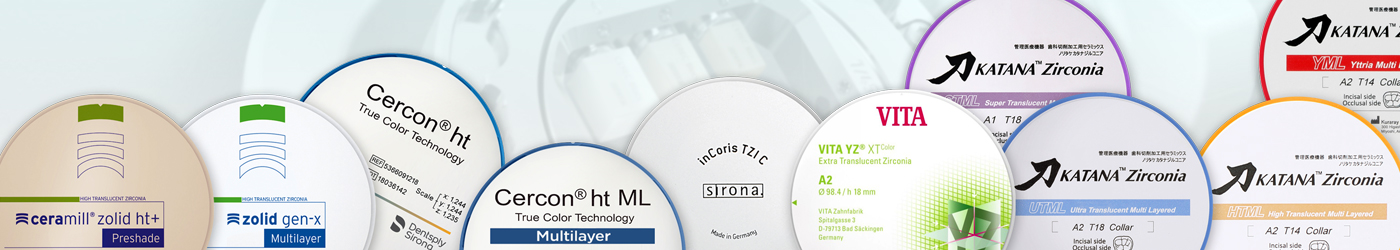 Predsintrované disky z oxidu zirkoničitého na výrobu koruniek, mostíkov, inlejí, onlejí, faziet a abutmentov pre zubné protézy.
