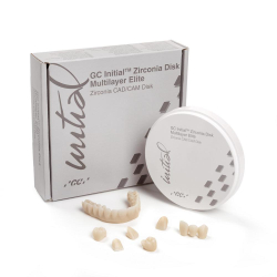 Super vysokotranslucentný viacvrstvový zirkónový disk s gradientom odtieňov a translucencie, s rámikom (F), priemer 98 mm, hrúbka 10, 12, 14, 16, 18, 20 a 25 mm.
