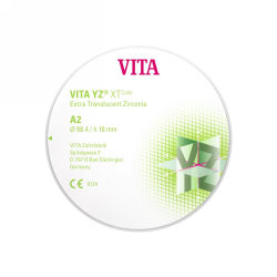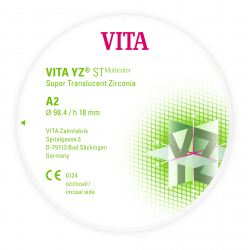Hybridný polychromatický zirkón (Y-TZP ZrO2) vo farbách VITA, disk 98 mm.