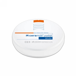 Vysoko translucentný zirkónový disk, biely, s modrým rámikom (F), priemer 98 mm, výška 10, 12, 14, 16, 18, 20 a 25 mm.