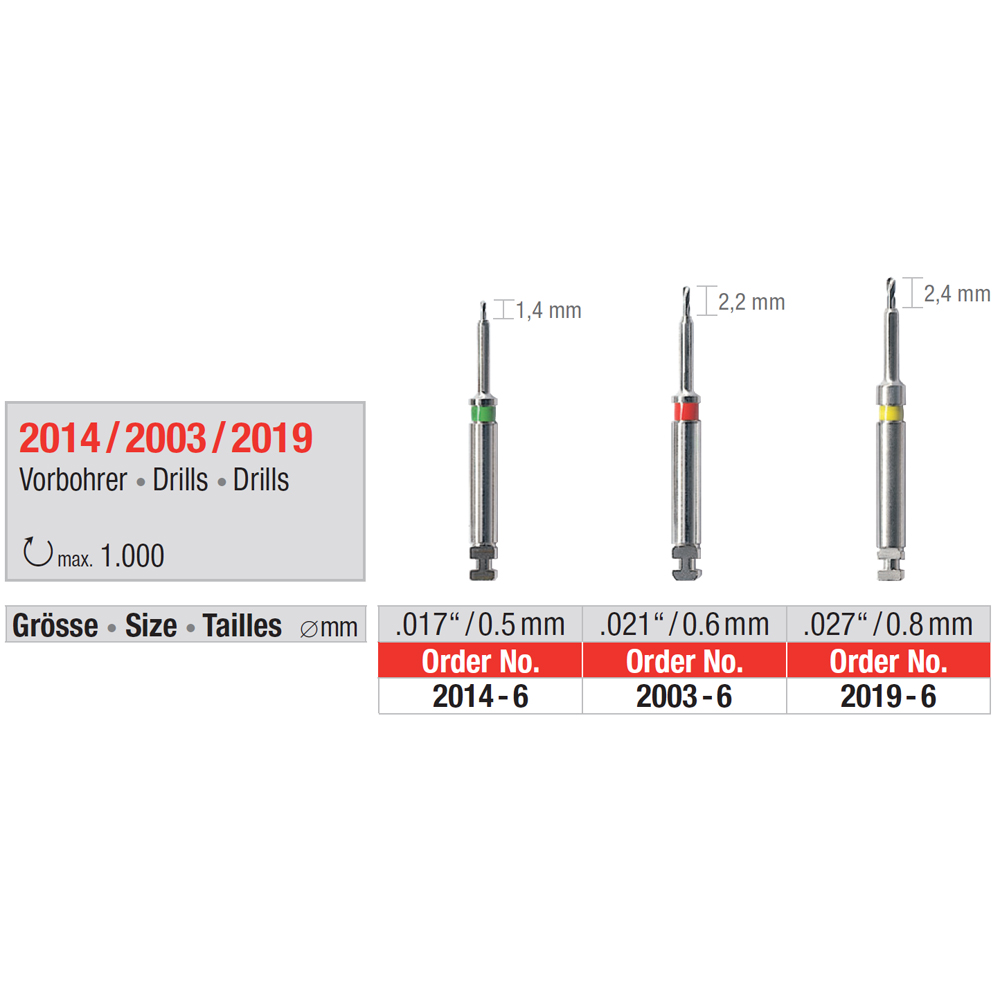Predvrták RA pre retenčné čapy Retopin, Tri-Jet, Tri-Star, zelený, priemer 0,5 mm, dĺžka konca 1,4 mm, balenie 6 ks. viac o produkte