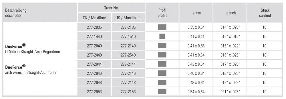 | 268930385 | DuoForce archwires Straight-Arch-Form OK Max.0,44x0,64mm