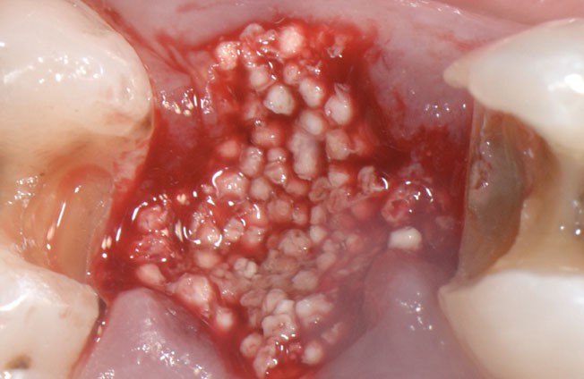 - vďaka tomu, že vytvrdne, dobre stabilizuje augmentované miesto aj implantát