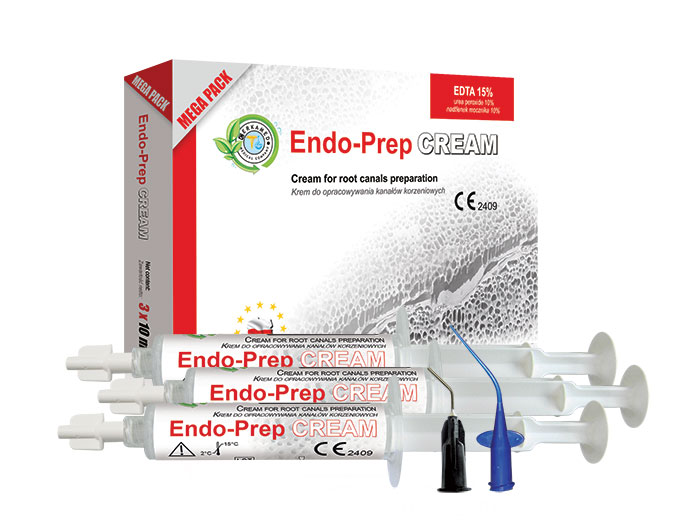 Výrobky ENDO-PREP CREAM (15% EDTA a 10% karbamidperoxidu) a ENDO-PREP GEL (17% EDTA) sú určené na chemicko-mechanickú prípravu koreňových kanálikov. Odstraňujú anorganické usadeniny, lubrikujú kanálik počas ošetrenia a majú mierne bieliace účinky v kanáliku.