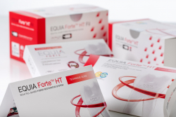 Najnovšia varianta vynikajúcej rady skloionomérnych materiálov GC: prináša technológiu Glass Hybrid (hybridné sklené plnivo) a novú úroveň estetickej kvality výplní - HT znamená vysoko translucentná. Tradične ide o chemicky tuhnúci bulk-filový materiál na dlhodobé terapeutické výplne v posteriórnej oblasti, používaný spolu s multifunkčným ochranným lakom Equia Forte Coat, zvyšujúcim povrchovú tvrdosť a odolnosť voči oteru. Glass Hybrid znamená inteligentnú distribúciu častíc a ich vzájomnú interakciu v pojive. Malé častice pôsobia ako lubrikant pre ľahké kontúrovanie a nelepivú konzistenciu a zároveň prepúšťajú viac svetla. Pevnosť v tlaku dosahuje úctyhodých 233 Mpa. Materiál je tolerantný voči vlhkosti (nevyžaduje koferdam), rýchlo spracovateľný (bez vrstvenia), má dlhší pracovný čas a kratší čas tuhnutia - celkovo trvá od aplikácie po zalakovanie cca 3 minúty 25 sekúnd.