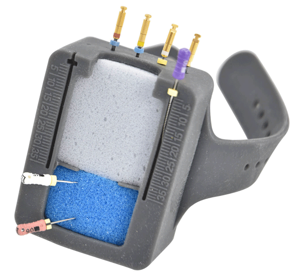 Praktický endodontický organizér a nosič endošpongií ako náramok na zápästie. viac o produkte