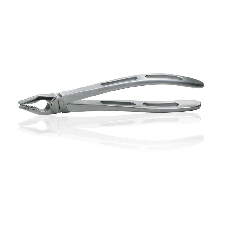 Precízna, jemná a na boku sploštená hlava klieští umožňuje hlboké uchopenie zuba a optimalizovaný proximálny rotačný pohyb. Distálne šikmé zúbkovanie na okraji čeľustí klieští umožňuje pohodlný pohyb vpred až ku krčku zuba. Nová štruktúra zúbkovania poskytuje optimálne uchopenie pri vykonávaní rotačných pohybov, ako aj pri extrakcii zuba. Otvorený úchop znižuje hmotnosť klieští a umožňuje dôkladné opláchnutie, najmä pri tepelnom spracovaní.