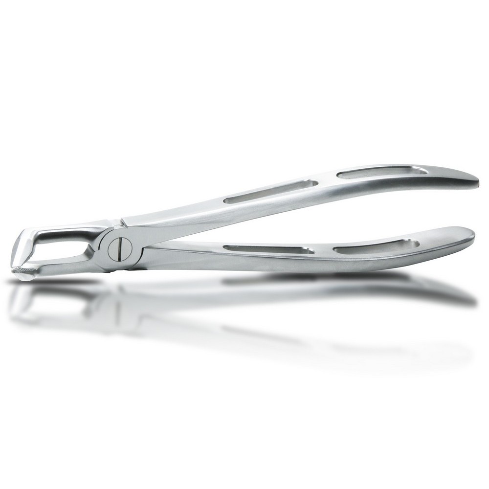 Precízna, jemná a na boku sploštená hlava klieští umožňuje hlboké uchopenie zuba a optimalizovaný proximálny rotačný pohyb. Distálne šikmé zúbkovanie na okraji čeľustí klieští umožňuje pohodlný pohyb vpred až ku krčku zuba. Nová štruktúra zúbkovania poskytuje optimálne uchopenie pri vykonávaní rotačných pohybov, ako aj pri extrakcii zuba. Otvorený úchop znižuje hmotnosť klieští a umožňuje dôkladné opláchnutie, najmä pri tepelnom spracovaní.