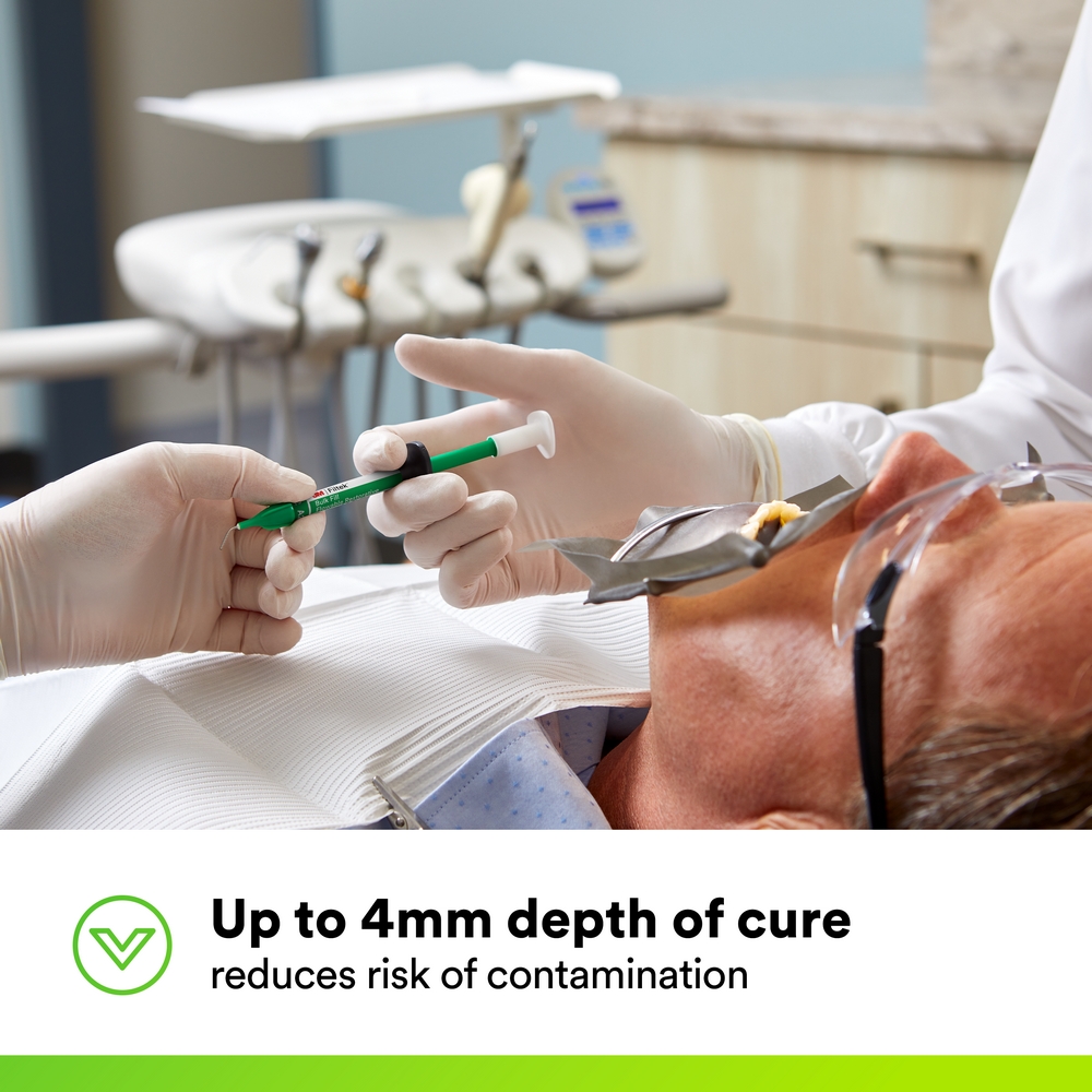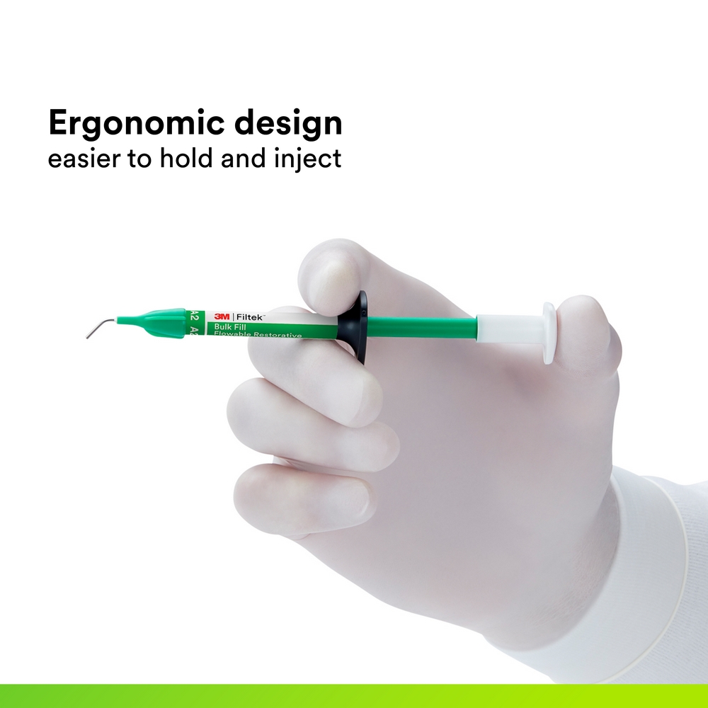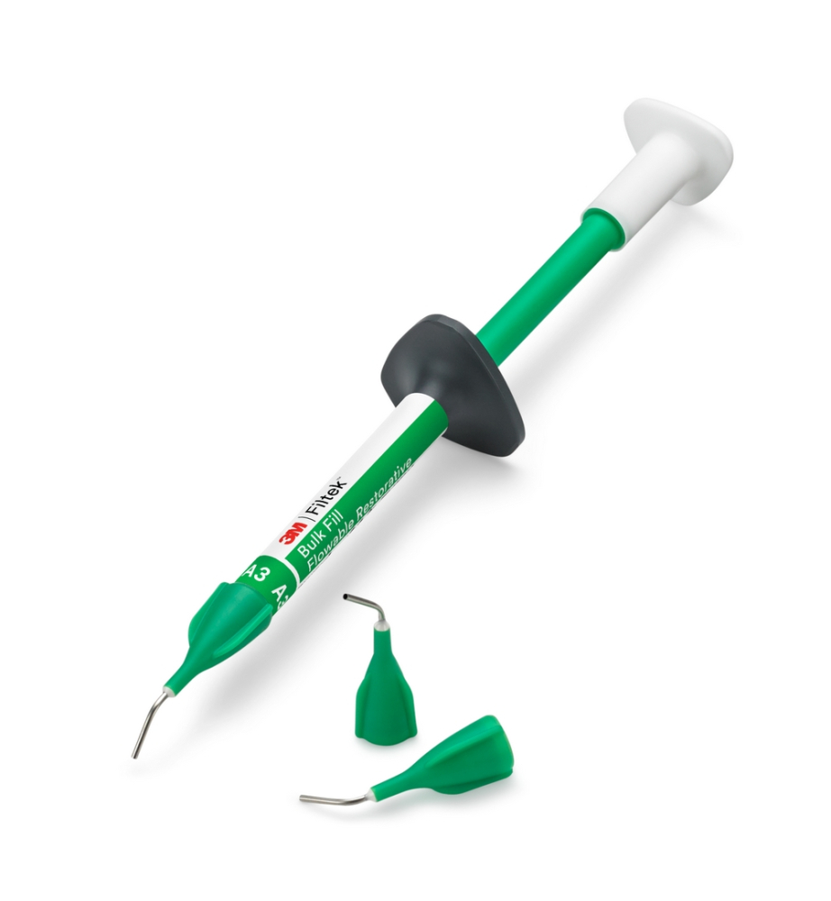 Zatekavý výplňový materiál FiltekTM Bulk Fill - skracuje dobu pracovného procesu bez kompromisov v kvalite výplne: jednoduchá a rýchla 4 mm aplikácia, zatekavá viskozita pre ľahkú adaptáciu, vysoká pevnosť a nízke opotrebenie. Filtek Bulk Fill je výplňový materiál, ktorý zamedzuje vzniku bublin a samovoľne nevyteká. Má lepšiu kontrolu aplikácie vďaka striekačke, ktorá sa dobre drží a ukazuje zostávajúce množstvo materiálu. Ohýbateľná kanyla umožňuje jednoduché ohnutie bez rizika zalomenia a zaisťuje lepší prístup do všetkých miest.