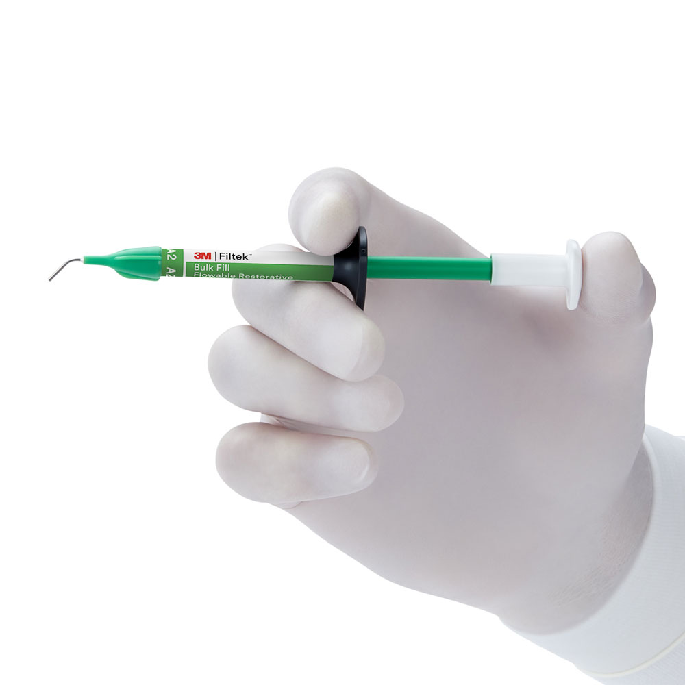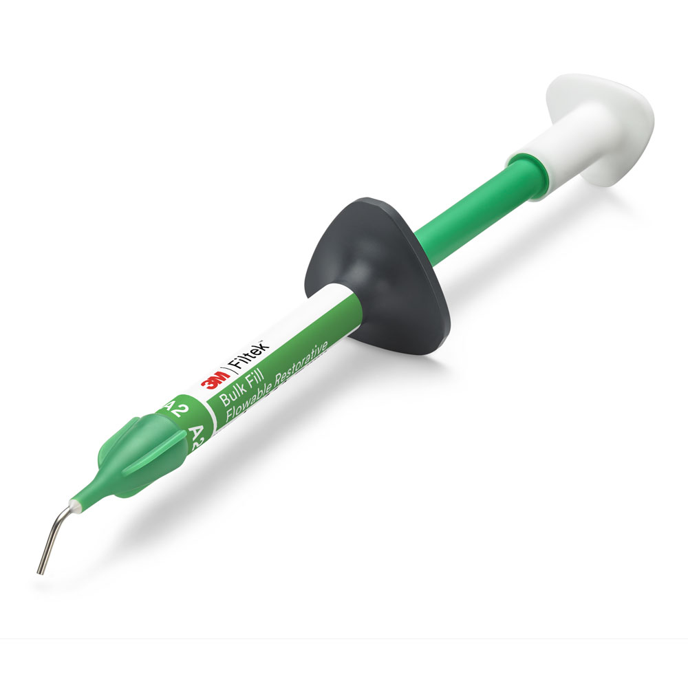 Zatekavý výplňový materiál FiltekTM Bulk Fill - skracuje dobu pracovného procesu bez kompromisov v kvalite výplne: jednoduchá a rýchla 4 mm aplikácia, zatekavá viskozita pre ľahkú adaptáciu, vysoká pevnosť a nízke opotrebenie. Filtek Bulk Fill je výplňový materiál, ktorý zamedzuje vzniku bublin a samovoľne nevyteká. Má lepšiu kontrolu aplikácie vďaka striekačke, ktorá sa dobre drží a ukazuje zostávajúce množstvo materiálu. Ohýbateľná kanyla umožňuje jednoduché ohnutie bez rizika zalomenia a zaisťuje lepší prístup do všetkých miest.