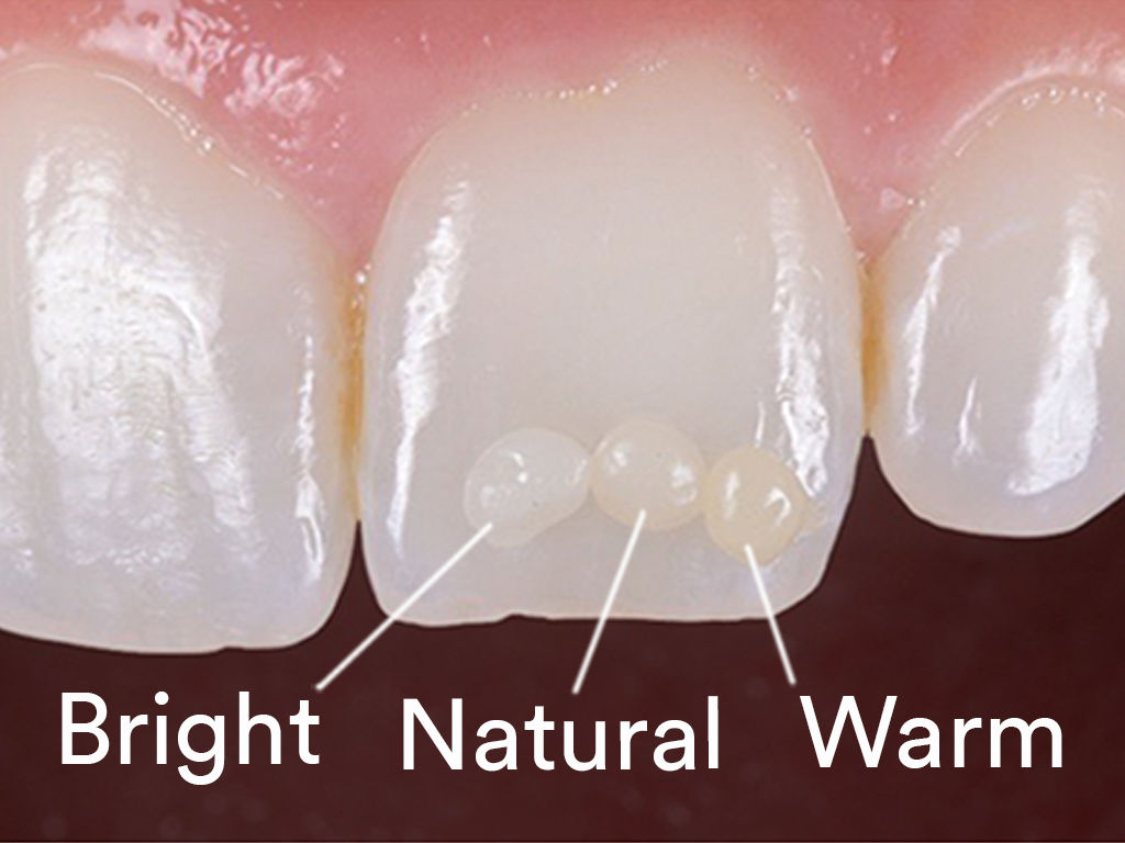 Zefektívnenie skladových zásob – odtieň Natural sa hodí k úsmevom väčšiny pacientov; pre ostatných vyberte doplnkové odtiene Bright alebo Warm.