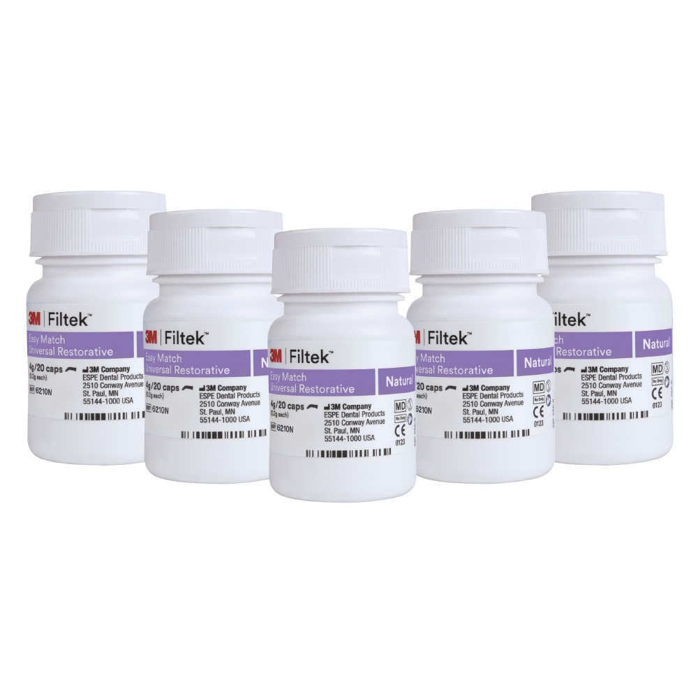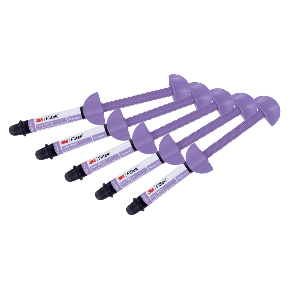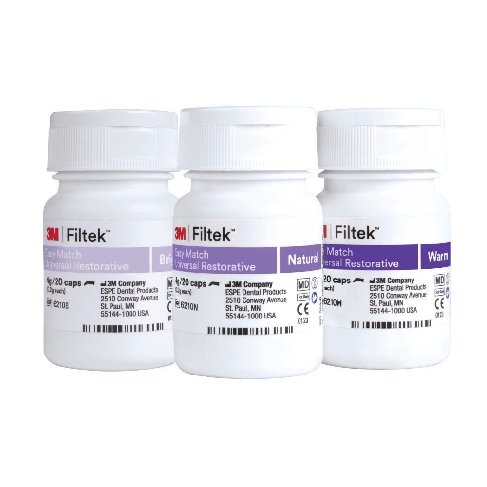 3M™ Filtek™ Easy Match Universal Restorative je zjednodušený systém tónovania navrhnutý tak, aby od začiatku zefektívnil rekonštrukcie v jednom odtieni -– a zároveň poskytol flexibilitu, ktorú potrebujete na nájdenie vhodného odtieňa pre väčšinu pacientov. Odtieň Natural zodpovedá väčšine prípadov; pre zvyšok vyberte doplnkové odtiene Bright a Warm. Na frontálnych aj distálnych úsekoch môžete pracovať intuitívne, bez blokátora. Navyše získate rovnaký výkon, manipuláciu a estetiku, aké očakávate od stomatologických materiálov 3M™ Filtek™.