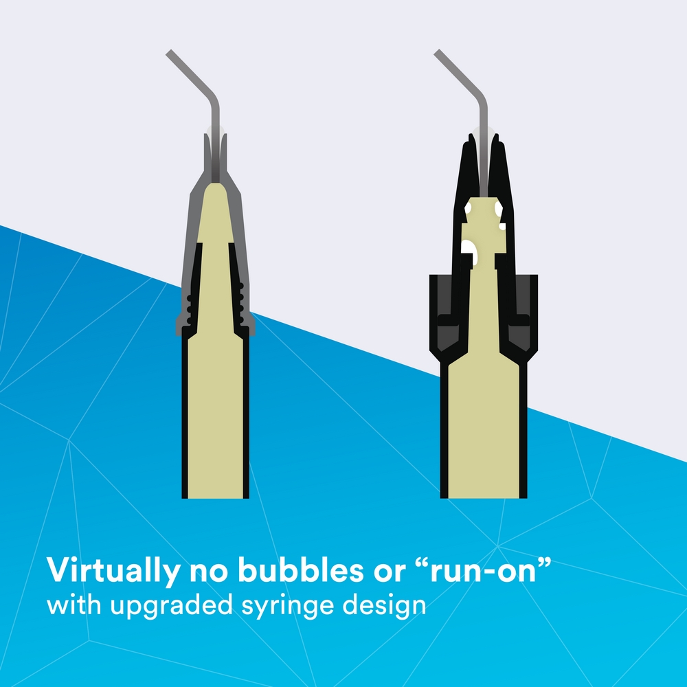 Nový dizajn špičky so zužujúcou sa vnútornou stenou – eliminuje vzduchové kapsy pri výmene aplikačnej špičky.
