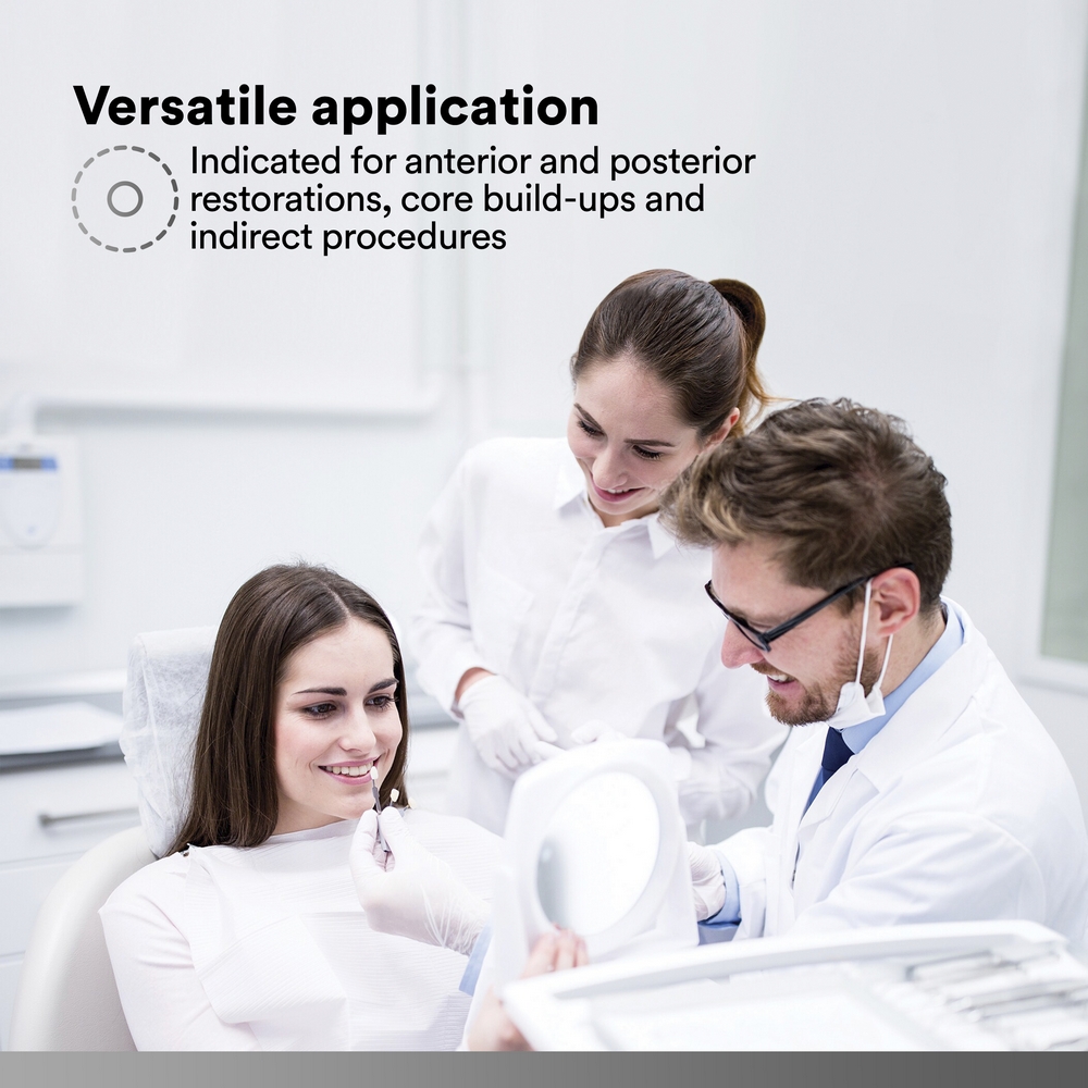 Univerzálny kompozitný materiál FiltekTM Z250, obsahujúci unikátnu hybridnú technológiu plniva 3M ESPE, je klinicky dlhodobo overený a veľmi rozšírený vo svete. Ideálne sa hodí pre rýchle jedno-odtieňové rekonštrukcie vo frontálnej a hlavne distálnej časti.